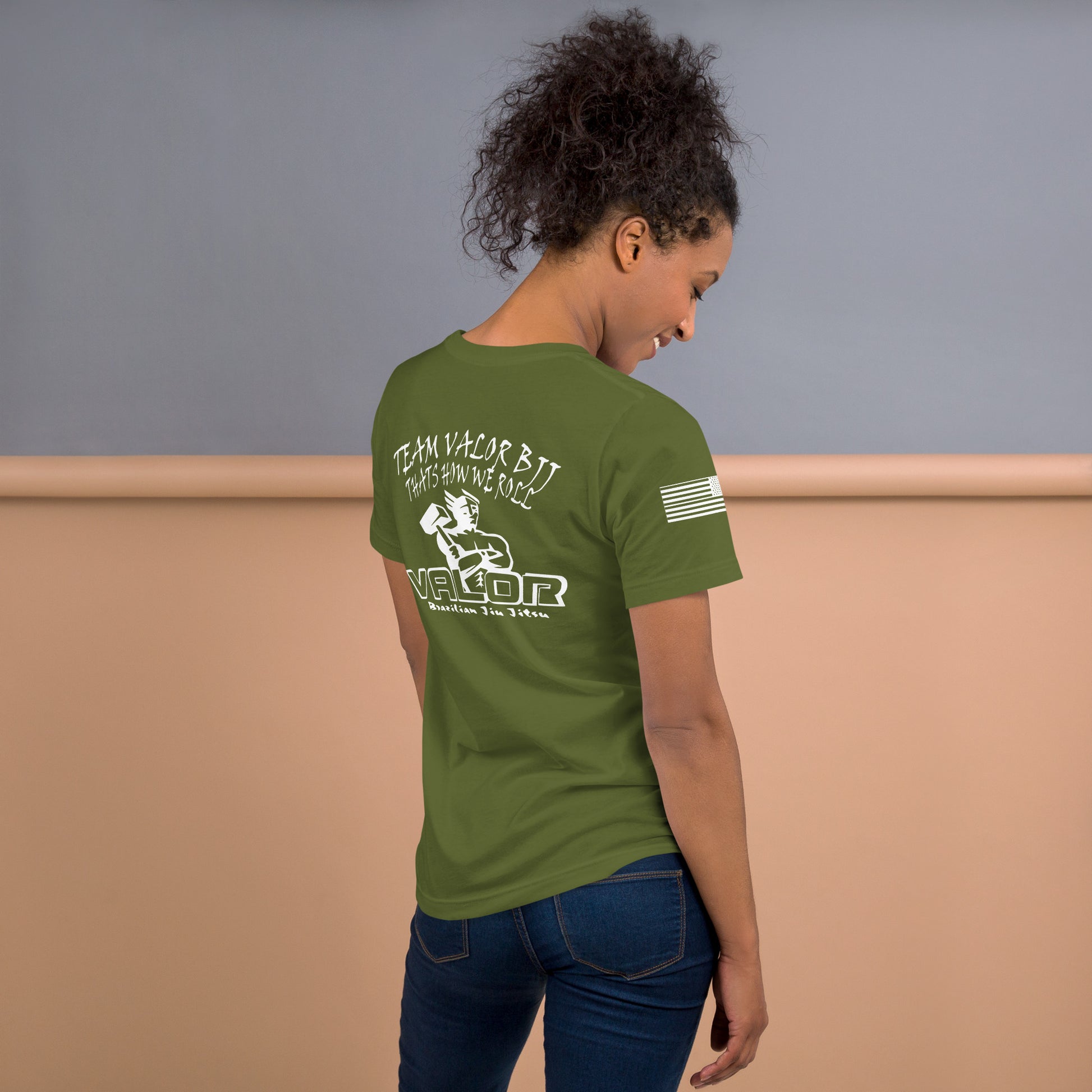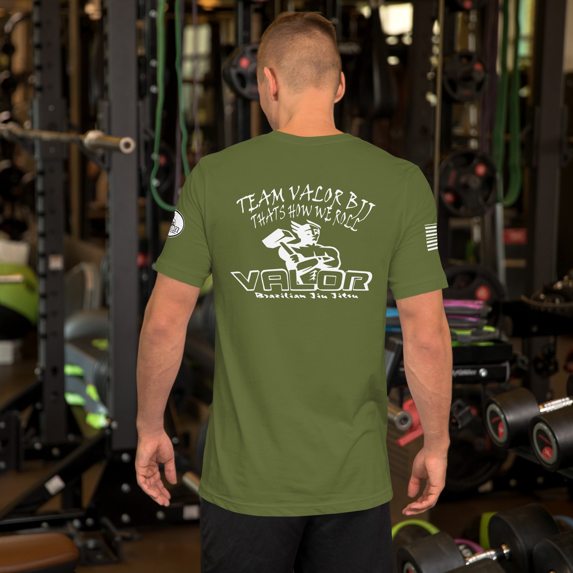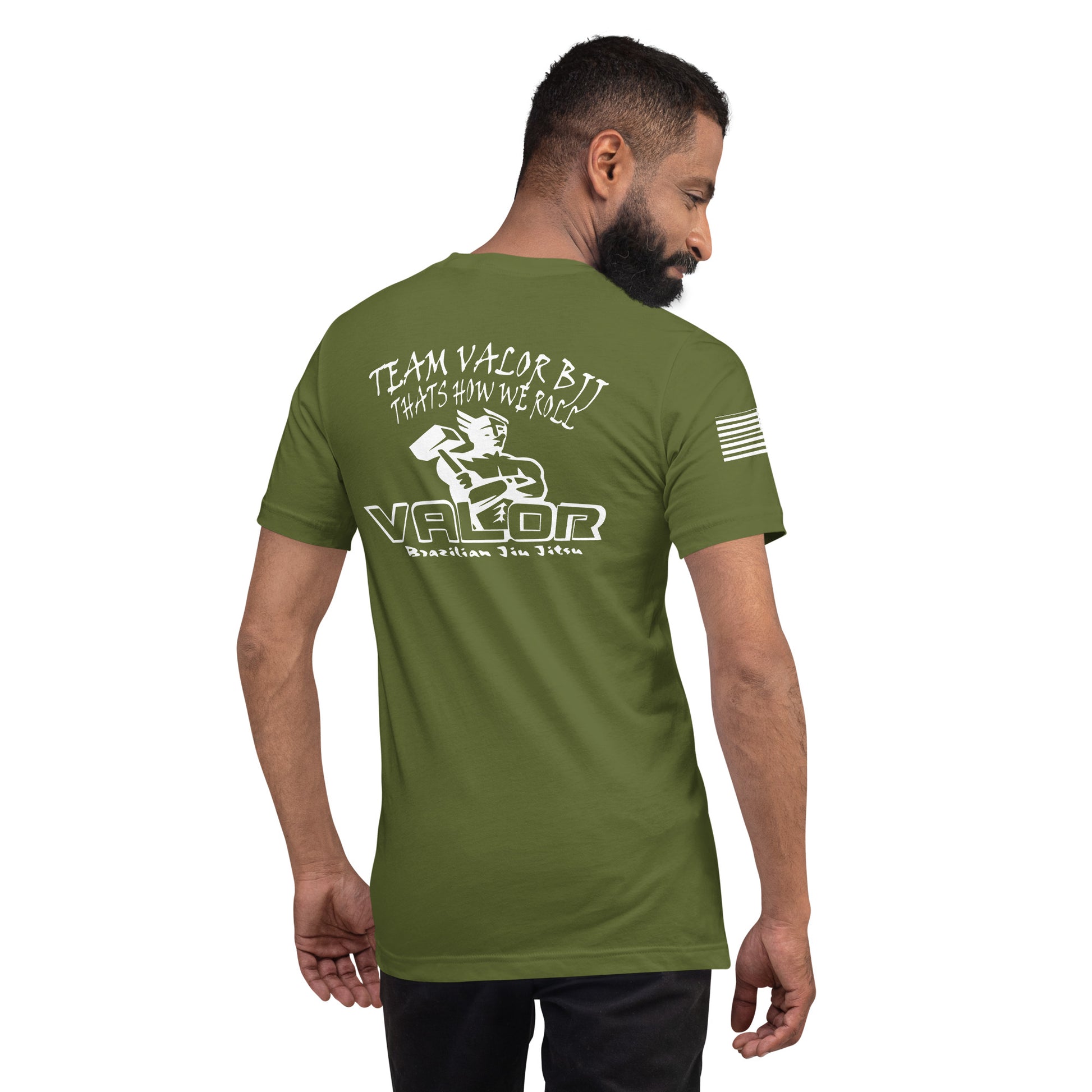 Get ready to roll in style with our VALOR BJJ T-shirt (Adult). This comfy tee is perfect for all your Brazilian Jiu-Jitsu adventures. With its bold design, you'll show off your love for the sport while feeling confident and comfortable. Go ahead, make a statement on and off the mat!